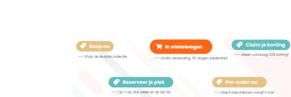 Stel je wilt een offerte aanvragen maar wilt er geen dagen op wachten. In de button staat dan: "Vraag offerte aan". Je begint nu gelijk na te denken, hoelang duurt dit dan? Wanneer kan ik hem verwachten? Kan een reden zijn om weg te klikken. Zet dit bijvoorbeeld gelijk onder de button: "Binnen 1 werkdag een passende offerte in je mailbox". In plaats van twijfel weet je dan precies wanneer je iets kunt verwachten. Kleine details die grote impact kunnen hebben.